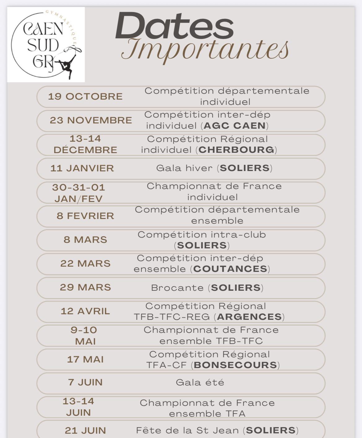 Compétition à venir saison 2025/2026